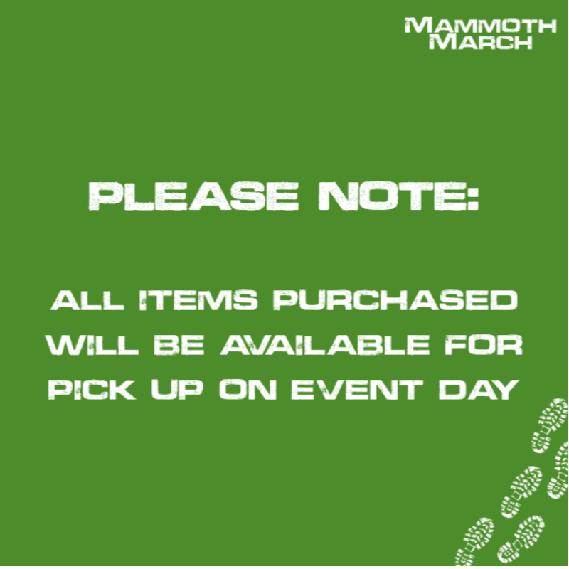 • Unique, limited-edition 2026 MammothMarch event shirt • 5.3 oz./yd², 100% polyester • Cotton feel ### PLEASE NOTE: All items purchased will be available to pick up on event day ###
